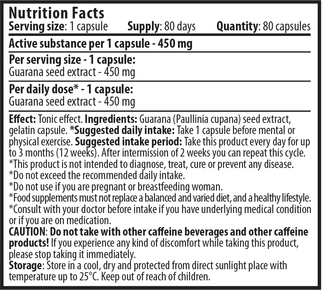 Cvetita Herbal Guarana 80 caps съдържа изключително чист и висококачествен екстракт от гуарана, който е считан за един от най-мощните естествени стимуланти.