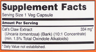 NOW Cat's Claw Extract е мощен антиоксидант и има силен противовъзпалителен ефект. Продуктът стимулира имунната система, прочиства чревния тракт и повишава производството на бели кръвни клетки.