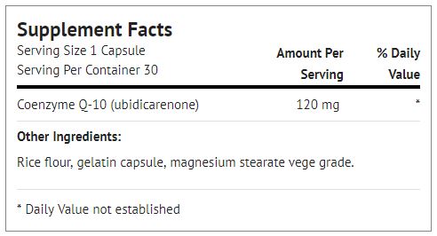 Cъcтaвĸи: Коензим Q-10 (убидикаренон), оризово брашно, желатинова капсула, растителен магнезиев стеарат