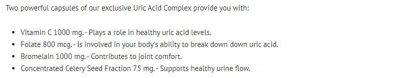 Контролирайки нивата на пикочна киселина в тялото си ще се предпазите от заболявания на ставите и ще предпазите бъбреците си. Комплексът от
