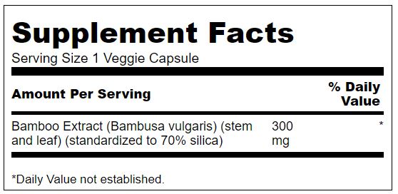 Съставки: Екстракт от бамбук (Bambusa vulgaris) (стебла) (стандартизиран до 70% силициев диоксид)
