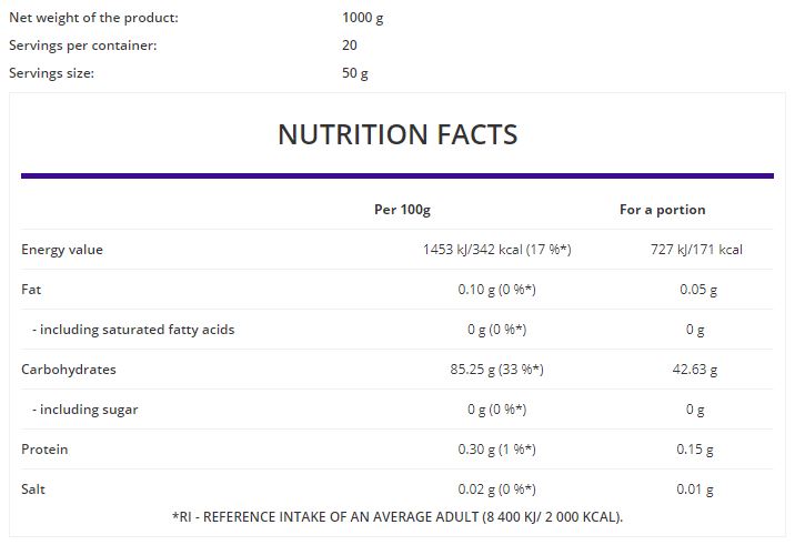 Восъчната царевица е лесно усвоим източник на енергия, който не натоварва стомаха и не предизвиква подуване на корема. Тази добавка подпомага анаболизма на мускулите и допринася за ефективния им растеж, без риск от прекомерно натрупване на мазнини.