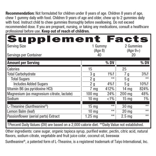 NATURES WAY Kids Cool, Calm & Collected е натурален и напълно безопасен продукт на пектинова основа, подсладен с органичен тапиока сироп и тръстикова захар. Обогатен е с лимонова трева, пасифлора, магнезий и л-теанин. Активни съставки, които спомагат за нормалното функциониране на нервната система и успокояват. Всички са прецизно подбрани и дозирани в количества, подходящи за детския организъм.