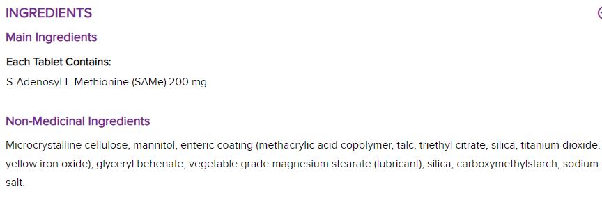 Състав: S-аденозил метионин (от 200 mg SAM-e тозилат дисулфат)