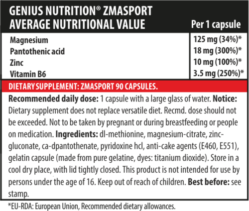 GENIUS NUTRITION ZMA SPORT / 90 Caps