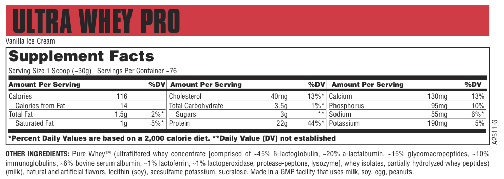 UNIVERSAL Ultra Whey Pro съдържа патентования комплекс Pure Whey™ включващ ултрафилтриран суроватъчен протеин концентрат, който се усвоява много лесно от организма и доставя на мускулите всички съставки, от които се нуждаят. Суроватъчен протеин концентрат насърчава изграждането на чиста мускулна маса и регулира нивото на мазнини в организма. Този протеин оказва подкрепа върху храносмилателната система, редуцира нивото на лошия холестерол и подпомага чернодробната дейност.