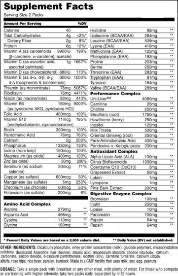 Animal Pak от Universal Animal съдържа мега дози от необходимите витамини и минерали. Да, витамини и минерали. Витамините (органични), и минералите (неорганични) са агенти и катализатори. Те могат да допринесат за съществени ергогенни/анаболни ползи и по-добро функциониране, като запалваща искра за всички необходими химични реакции, които седят в основата на тренирането и изграждането на мускулна маса.