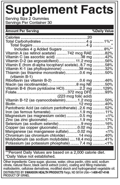 SWANSON Multi Gummies - Raspberry / 60 Gummies е хранителна добавка, под формата на вкусни дъвчащи таблеки, която стимулира имунната система и подпомага общото здравословно състояние.