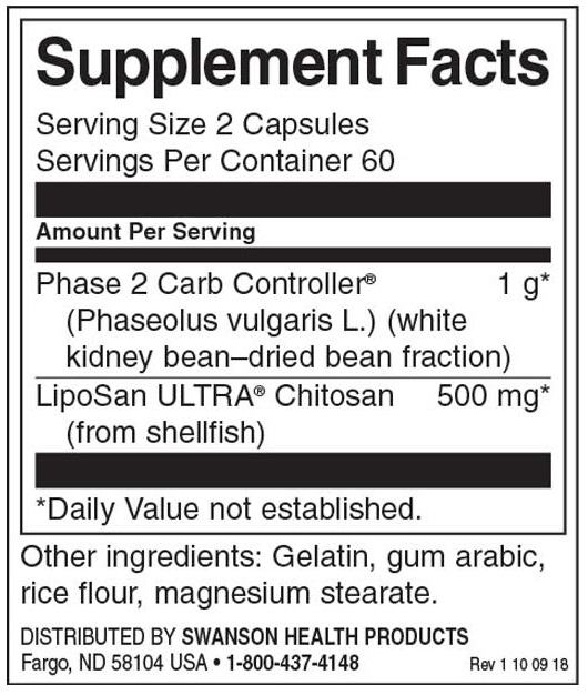 SWANSON Diet Duo / 120 Caps, представлява екстракт от бял боб, който има сходен ефект с хитозана, но по отношение на въглехидратите. Той блокира усвояването им и стимулира изхвърлянето им от тялото, без да ги абсорбира.