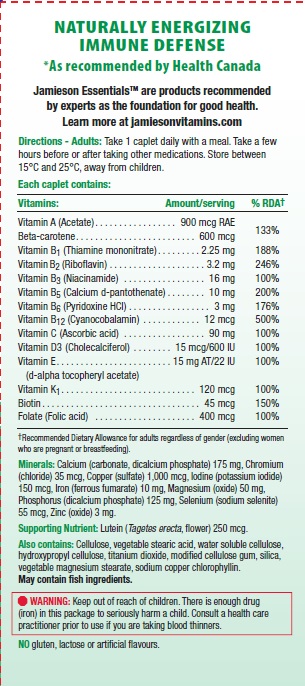 JAMIESON Multivitamins for Adults / 90 Tabs e мощна комбинация от мултивитамини и минерали, която стимулира имунната система и подобрява цялостното здраве.