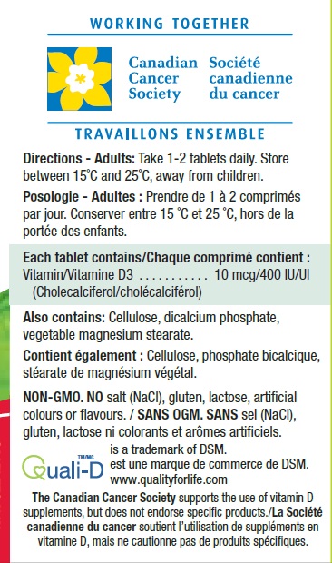 Съставки: Витамин D3 (Cholecalciferol), емулгатор: целулоза, втвърдител: дикалциев фосфат, антислепващ агент: растителен магнезиев стеарат