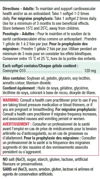 Съставки: Коензим Q10 120 mg, лецитин, жълт пчелен восък, соево масло, желатин, глицерин, титанов диоксид