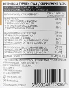 Omega 3-6-9 от OstroVit Pharma съчетава незаменимите мастни киселини, от които тялото ви се нуждае, но не може да произвежда самостоятелно. Омега-3 (EPA и DHA) подпомагат здравето на сърцето и когнитивната функция. Омега-6 са жизненоважни за здравата кожа и балансираната възпалителна реакция. Омега-9 допринасят за поддържане на здравословни нива на холестерола.