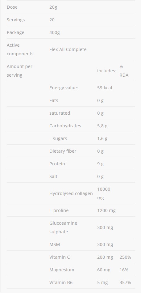 FLEX ALL COMPLETE съдържа редица вещества, витамини и минерали, най-важните от които са: