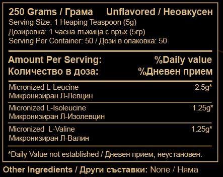 Съставки: Микронизиран Л-Левцин, Микронизиран Л-Изолевцин, Микронизиран Л-Валин