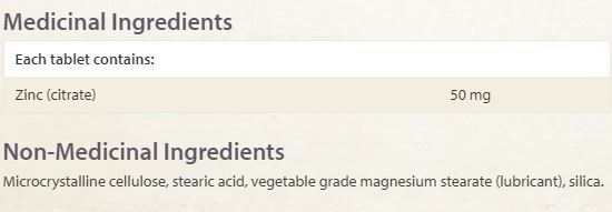 Съставки: Цинк (цитрат), Микрокристална целулоза, магнезиев стеарат (растителен клас)