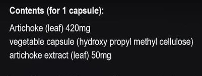 Съставки: Eкстракт от листа на Артишок 100мг; артишок лист 840мг