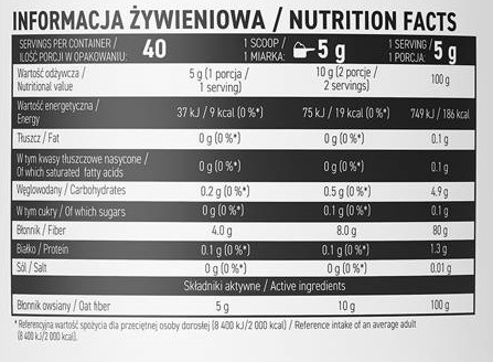 OstroVit Oat Fiber VEGE е продукт, създаден за хора, за които здравословното хранене е приоритет. Една опаковка от продукта представлява цели 40 порции фибри, които при редовен прием са достатъчни за 20 дни употреба. Към опаковката е прикрепена удобна измервателна лента, благодарение на която можете точно да измерите необходимото количество от продукта.