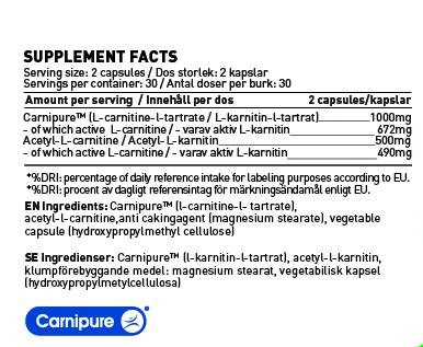 SWEDISH SUPPLEMENTS L-Carnitine Forte Carnipure® + Acetyl 60 Caps