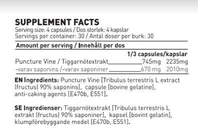 SWEDISH SUPPLEMENTS Tribulus Forte са идеални за прием преди тренировка. Добавката съдържа най-малко