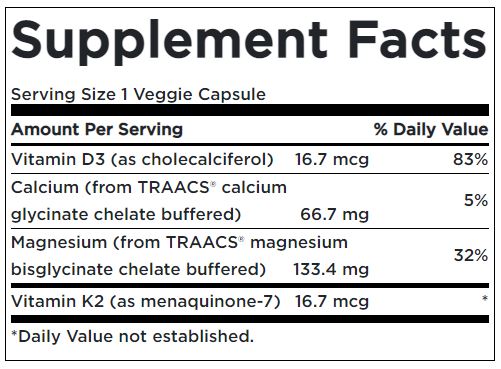 Съставки: Витамин D3, Калций, Магнезий, Витамин К2