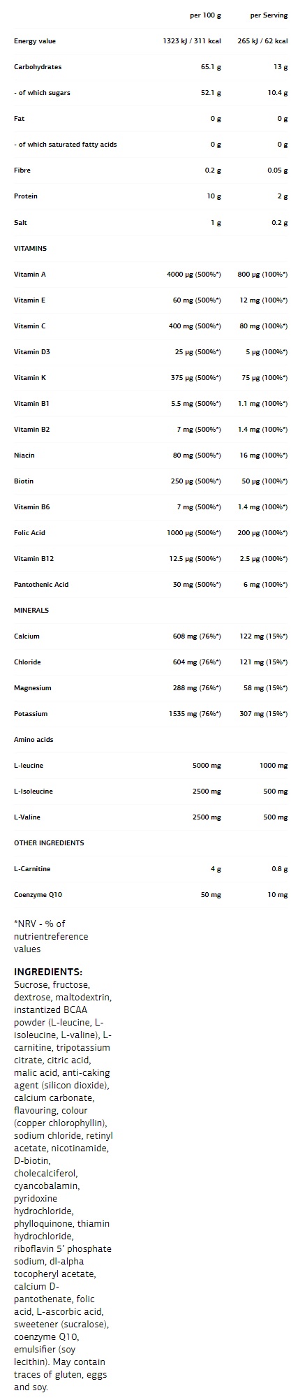 Начин на приемане: Приемайте 1 доза 1 – 2 пъти дневно разтворена в 500 мл. вода по време на тренировка и/ли сутрин след сън