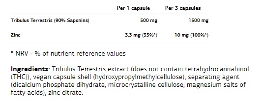 VPLAB Tribulus Terrestrisе адаптогенно растение, което стимулира ендокринната система. Активната съставка на растението, сапонин, подпомага процеса на производство на протеини, както и мускулната издръжливост. Смята се, че има свойства за повишаване на либидото и енергията и може да поддържа съня в..