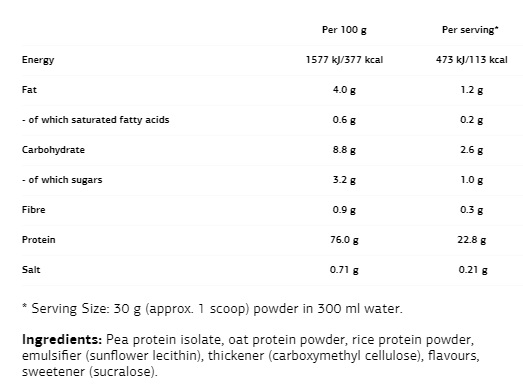 И трите протеинови източника са 100% веган, естествено хипоалергенни и образуват пълноценна протеинова матрица.