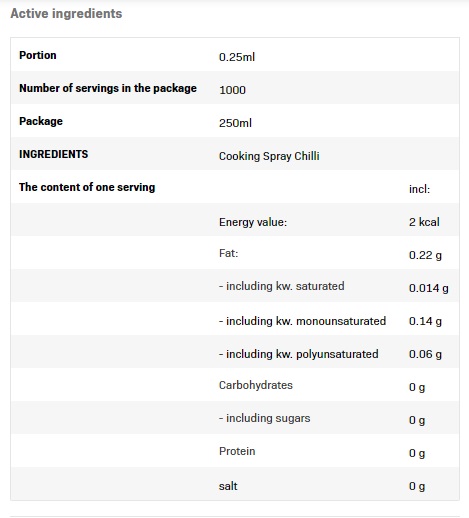 Това е идеалният контрол и ограничаване на ненужните калории в диетата ви. Спреят за готвене Чили е перфектната комбинация от зехтини пикантна люта чушка. Тя ще придаде на ястията ви отличителен и дяволски вкус. Насладете се нанашия