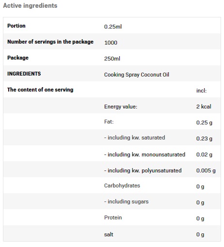 Просто го разклатете, напръскайте го върху тиган или друг съд и сте готови да започнете. Това е идеалният контрол и ограничаване на ненужните калории в диетата ви. Кокосовото масло е ценен източник на MCT мастни киселини. Насладете се нанашия