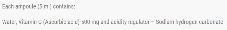 Съставки: Вода, Витамин C (Аскорбинова киселина), Натриев хидроген карбонат