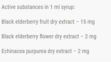 Съставки: Сух екстракт от плодове на Черен бъз, Сух екстракт от цветове на Черен бъз, Сух екстракт от Echinacea purpurea