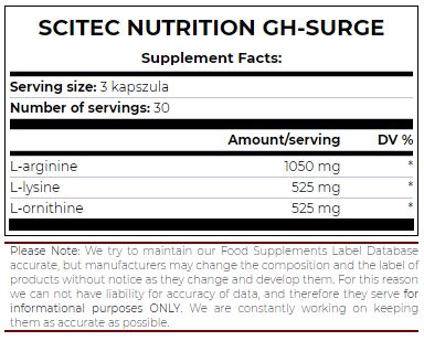 SCITEC GH Surge – безупречна формула за скоростното повишаване на хормона на растежа! Хормонът на растежа (Human Growth Hormone) е често обсъждан аспект от живота на всеки атлет или бодибилдър, а неговото повишаване чрез приема на допълнителен L-аргинин е много честа практика. Формулата на SCITEC GH Surge съдържа както L-аргинин, така и L-орнитин и L-лизин, които правят процеса още по-бърз!
