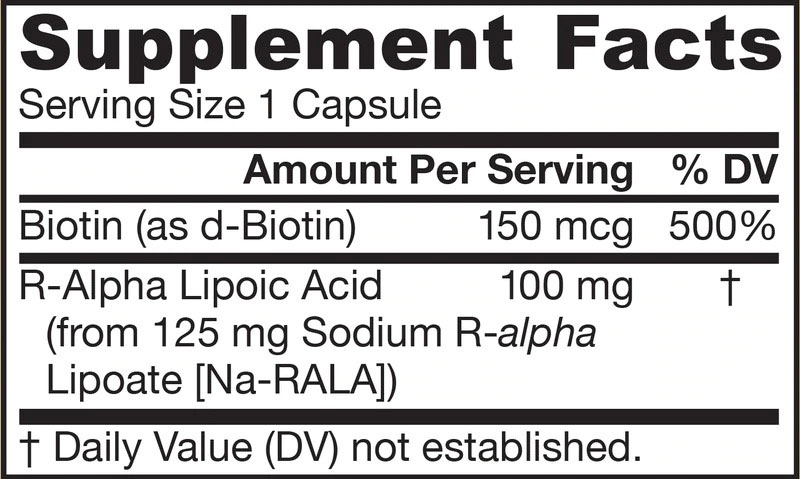 Jarrow Formulas R-Alpha Lipoic Acid + Biotin е една от най-висококачествените хранителни добавки, съдържаща 600mg алфа-липоева киселина (ALA) на капсула. ALA се произвежда от човешкия организъм в малки количества и има високи антиоксидантни свойства, които неутрализират свободните кислородни радикали (OFR), образувани като страничен продукт при интензивни метаболитни промени.Алфа-липоевата киселина или ALA е естествено съединение, което се произвежда в организма. Тя изпълнява жизненоважни функции на клетъчно ниво, като например производството на енергия. Докато сте здрави, организмът може да произвежда цялата ALA, от която се нуждае за тези цели. Въпреки този факт напоследък се наблюдава голям интерес към употребата на добавки с ALA. Привържениците на ALA изтъкват различни твърдения - от благотворно въздействие при лечение на заболявания като диабет и ХИВ до засилване на загубата на тегло. Проучванията за ефекта от приема на ALA са оскъдни. Все пак наличните данни показват някои възможни ползи. Ето какво е известно за потенциалните ползи за здравето от употребата на добавки с алфа-липоева киселина.
