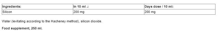 Съставки: Силиций, Вода (левитираща по метода Хахеней), силициев диоксид