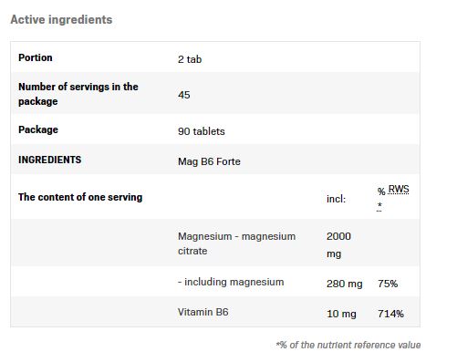 Съставки: магнезий (магнезиев цитрат), витамин В6