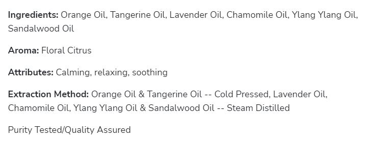 Успокояващата бленда NOW Peaceful Sleep Oil Blend се състои от масла от портокал, мандарина, лавандула, лайка, иланг-иланг и сандалово дърво, извлечени чрез естествена дестилация и студено пресоване, предлагайки най-чистите и мощни натурални етерични масла. Продуктът не съдържа синтетични аромати и химикали, и като всички останали продукти от серията NOW Essential Oils, не е тестван върху животни!
