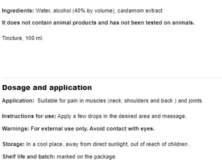 Начин на употреба: Капнете няколко капки върху засегнатата област и масажирайте, втривайки добре.