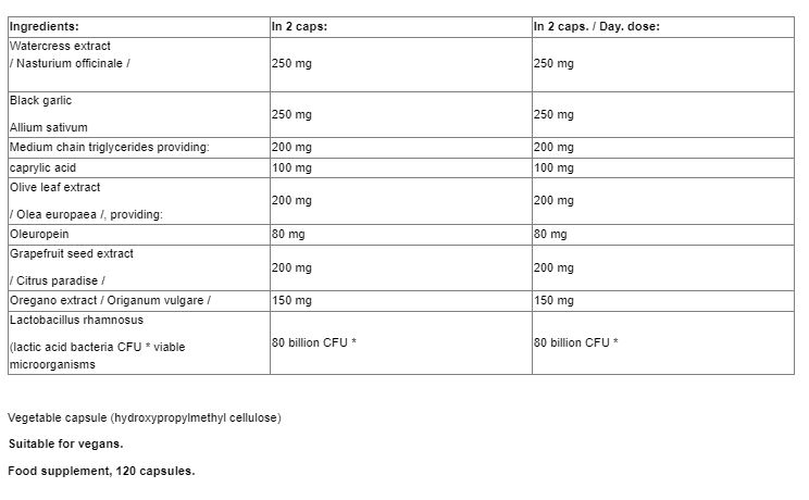 VEGAVERO Candi-Aid Complex. Той съчетава високодозирани растителни екстракти от воден кресон, риган, черен чесън, грейпфрут и маслинови листа с MCT на прах (50% каприлова киселина) и Lactobacillus rhamnosus, за да се гарантира най-висока бионаличност и ефикасност. Освен това екстрактът от маслинови листа е стандартизиран до 40% олеуропеин, а екстрактът от семена на грейпфрут - до 45% флавоноиди: и двете са важни и полезни антиоксидантни съединения.