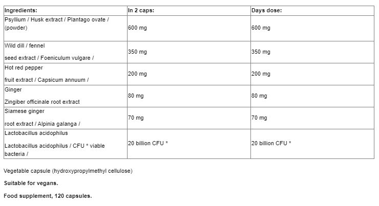 VEGAVERO Colon Care Complex за грижа надебелоточерво и цялостното здраве на микробиомае уникална формула и 100% натурална комбинация от висококачествени растителни съставки. Комбинирани сафибри от люспи от псилиум с етерични масла от джинджифил, гаргара и копър, както и млечнокисели бактерии (Lactobacillus acidophilus) и капсаицин от лют червен пипер.