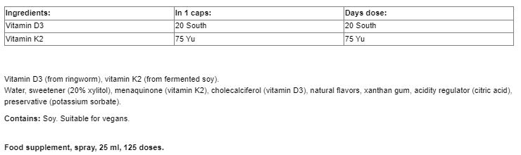 К2 под формата на лесен и удобен за употреба по всяко време спрей, насърчаващ абсорбацията на калций и стимулация на имунната система