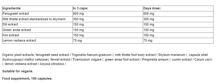 Mamma Complex който е уникална смес от 6 подбрани органични растителни екстракта и предлага чисто естествена подкрепа за кърмещите майки. Комбинираха и сминдух, копър, зелен анасон, кимион и лимонова върбинка, които традиционно се използват за увеличаване на кърмата, но също така и за противодействие на ефектите на подуване на корема и метеоризъм при майките и бебетата
