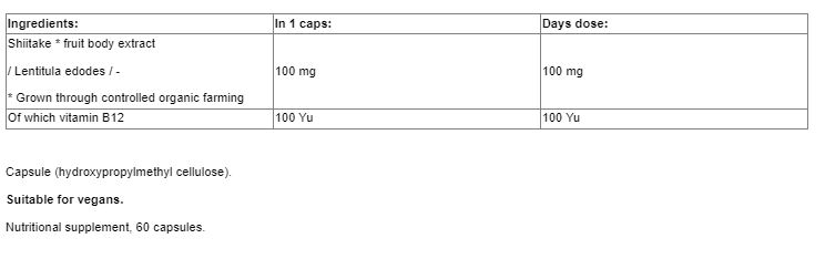 Vitamin B12 извлечен от органично отгледани гъби Шийтаке за максимална ефективност по патентована формула подходяща и за вегани от