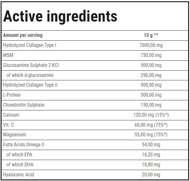 Глюкозамин сулфат - Основната цел на редовния прием на глюкозамин сулфат е ускоряване на регенерацията на хрущялната и костната тъкан, натоварена от прекомерното натоварване на определени ставни елементи. Допълнителна полза в случай на нараняване може да бъде значителното намаляване на болката и други неразположения, затрудняващи функционирането в ежедневието. Важно е да се знае, че подвижните стави в човешкия скелет са постоянно изложени на увреждане поради прекомерна физическа активност, затлъстяване и диета, бедна на основни хранителни вещества. Глюкозамин сулфатът стимулира съответните клетки и е стимул за тях по време на усиленото възстановяване на съединителната тъкан чрез синтез на протеогликани. Той също така косвено противодейства на повишената загуба на калций от костите. Благодарение на хидрофилния си характер глюкозаминът абсорбира водата, задържа я в хрущялната тъкан и я подхранва допълнително, като по този начин ѝ осигурява желаната устойчивост на механични деформации.