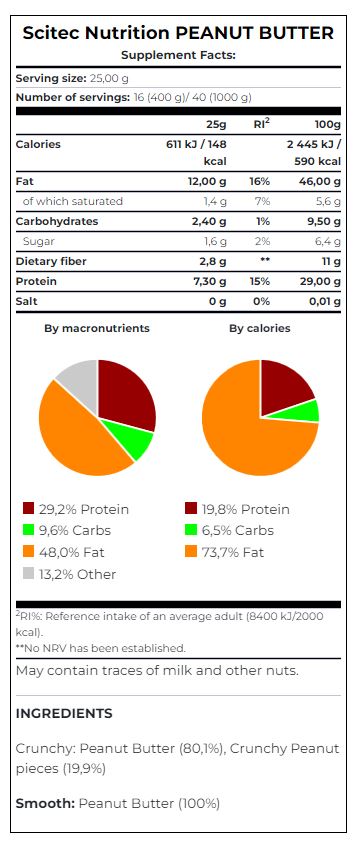Фъстъченото масло на SCITEC е идеалната покупка за онези от вас, които виждат тялото си като храм. Подходящо е както за похапвания между основни хранения, например с плодове, или пък на препечена филийка пълнозърнест хляб, така и като добавка в следтренировъчен протеинов шейк.