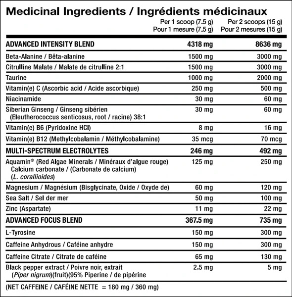 Прием: Уверете се, че пиете достатъчно течности преди, по време и след тренировка. Смесете 1/2 мерителна лъжичка в 1 - 2 чаши вода около 45 - 90 минути преди тренировка.