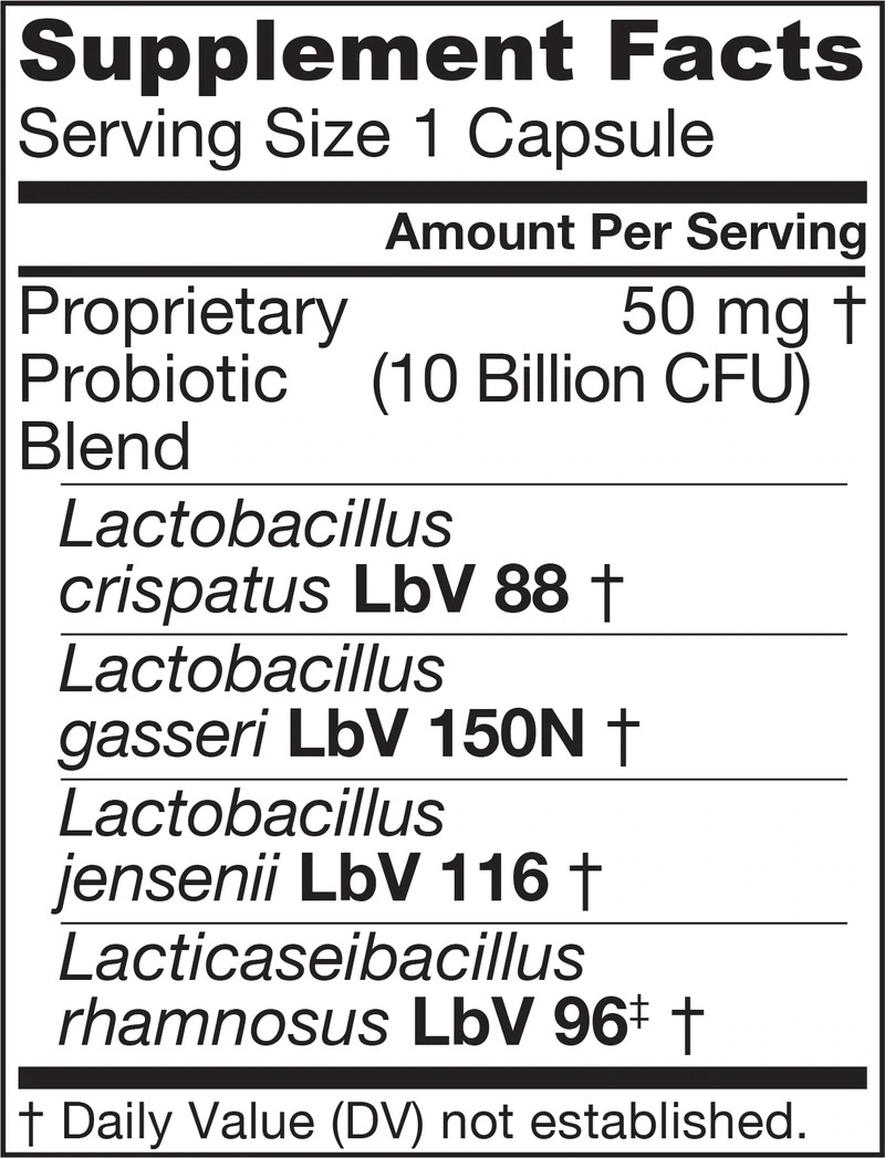 Състав: Патентована пробиотична смес: LBV 88, LBV 150, LBV 116, LBV 96