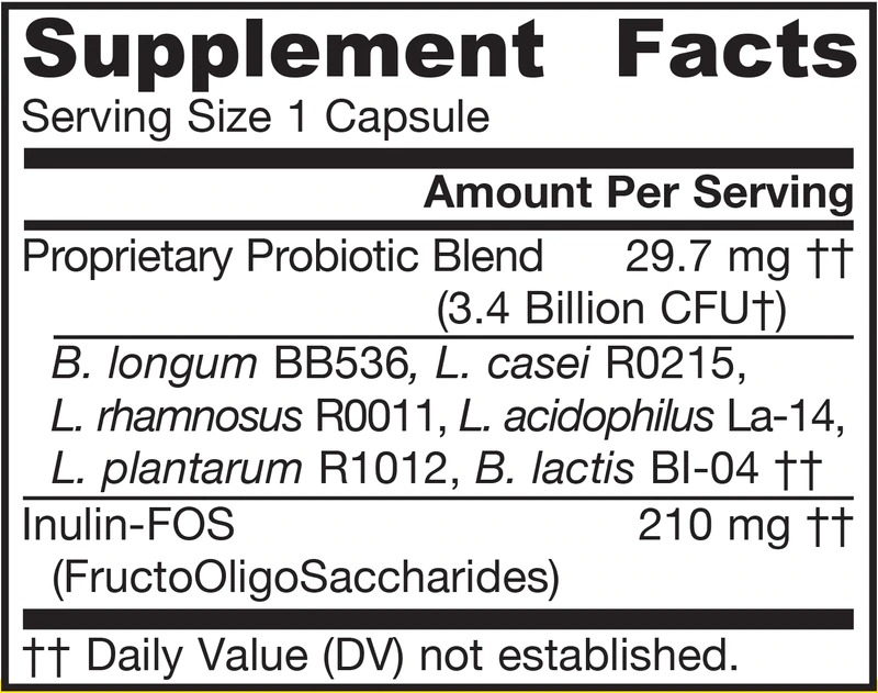 Съставки: B. longum BB536, L. casei R0215, L. rhamnosus R0011, L. acidophilus La-14, L. plantarum R1012, B. lactis BI-04, Inulin-FOS (фруктоолигозахариди)