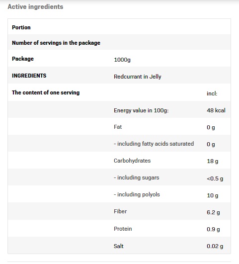 100% органичен висококачествен гел от червен касис с високо съдържание на естествени диетични фибри