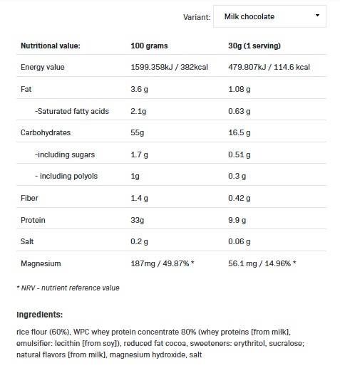 PROTEIN RICE PORRIDGE е обогатен с магнезий, който подпомага правилното функциониране на мускулите и спомага за правилния синтез на протеини.